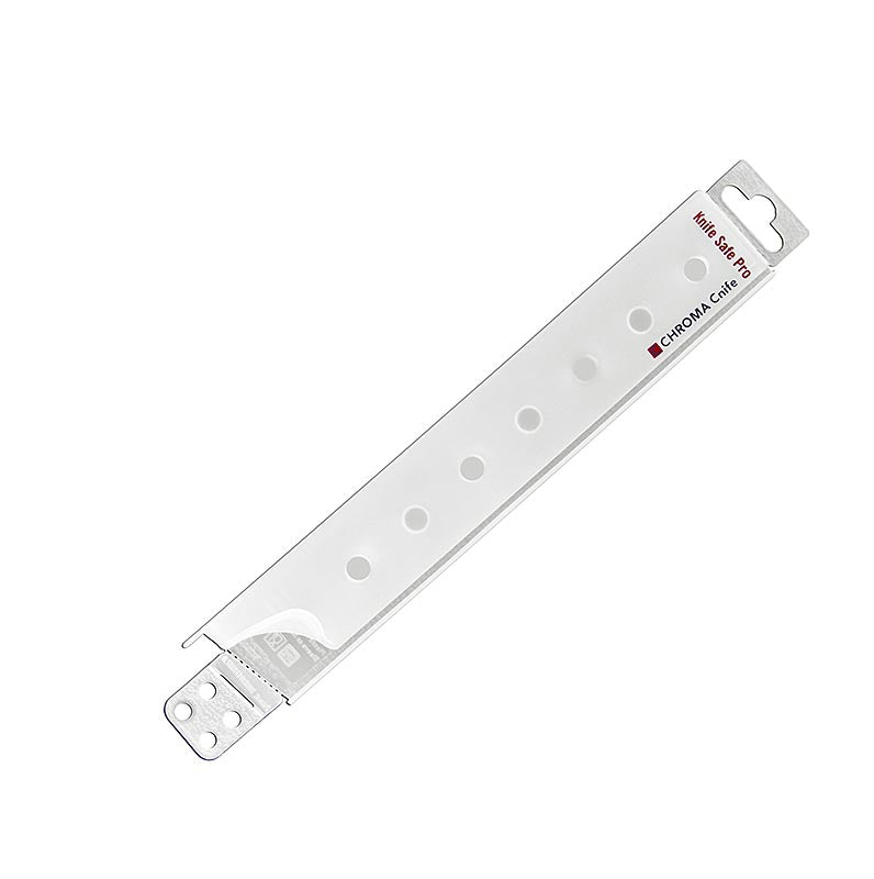 Um hochwertige Messerklingen optimal schützen zu können bietet Chroma den robusten Klingenschutz Knife Safe Pro an. Sie sind neben den weiteren Aufbewhrungsmöglichkeiten, wie den Chroma Magnetleisten und Messerblöcken eine preiswerte Alternative um Messer geschützt aufzubewahren. Die Safe Pro Kunsstoffschäfte werden einfach über die Messerklinge geschoben und können bei Bedarf gegen das Herausziehen mit einem Kabelbinder gesichert werden, z.B. für den Transport, für Messer die nicht so häufig eingesetzt werden oder wenn Kinder Zugang zu den Schubladen haben. Der Klingenschutz Safe Pro ist verschiedenen Längen und Breiten erhältlich.