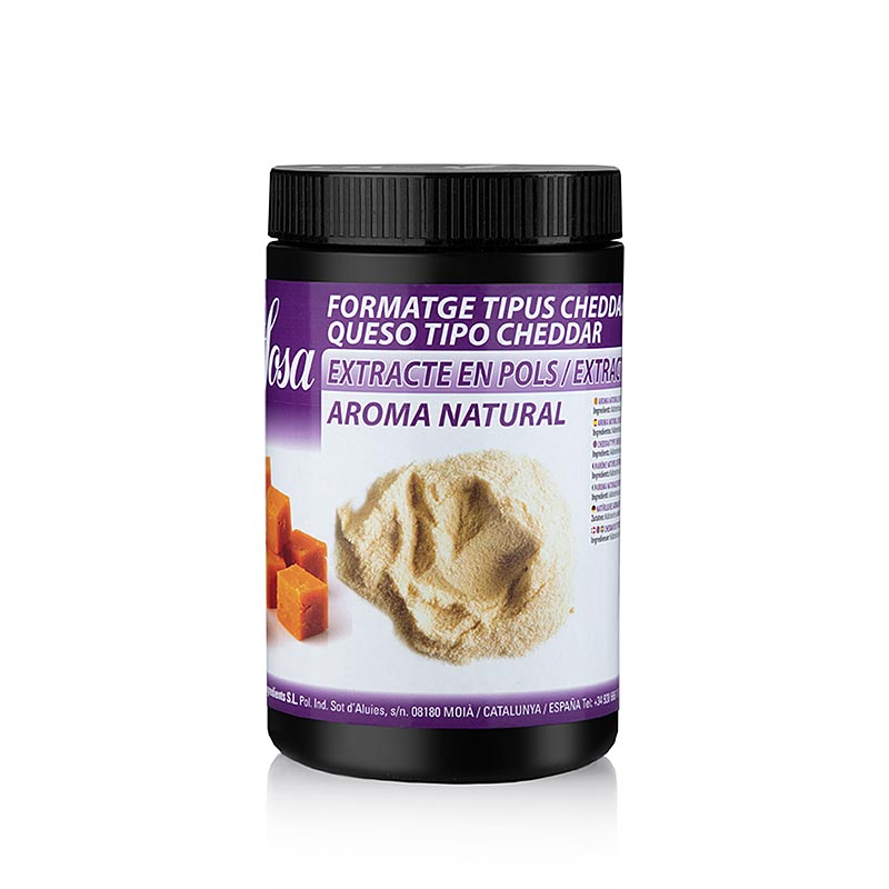 Inhaltsstoffe/Produktinformation: Natürliches Aromapulver Cheddarkäsegeschmack. Zutaten: Maltodextrin, natürliches Aroma (MILCH). Dosierung: 10-30g/kg. Kühl und trocken lagern. Hergestellt in Spanien.Eigenschaften: Geeignet f. Halal-Ernährung, Geeignet f. Kosher-Ernährung, vegetarisch.