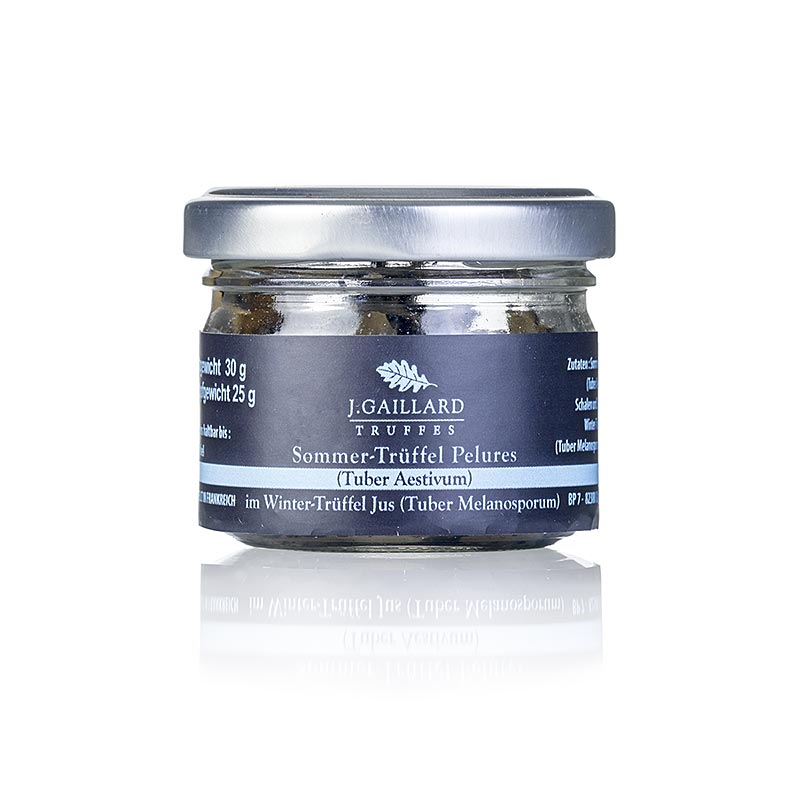 Inhaltsstoffe/Produktinformation: Sommertrüffel in Wintertrüffelsaft. Zutaten: Sommertrüffelschalen und Scheiben (Tuber Aestivum), Wintertrüffelsaft (Tuber Melanosporum), Salz. Hergestellt in Frankreich.